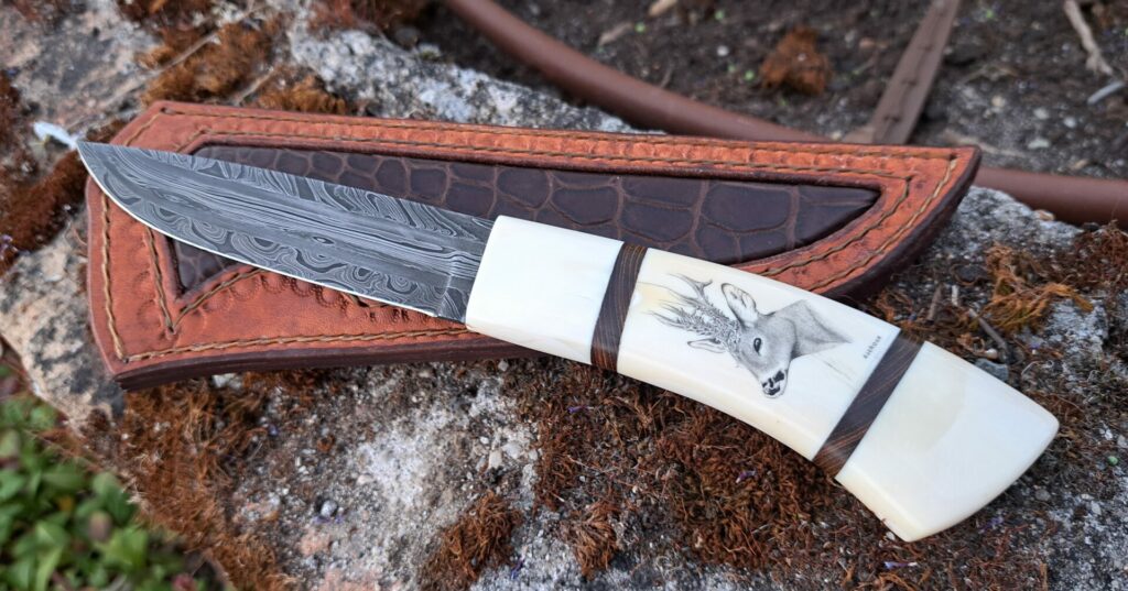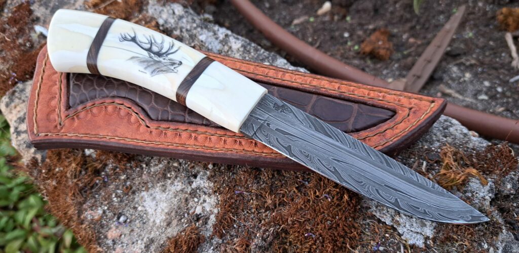 Garde inox, morta, écorse de bouleau et merrain de cerf patiné